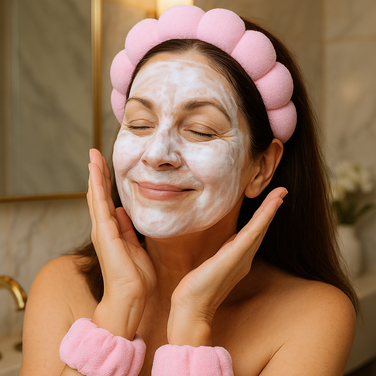 1. Cleanse: Begin with a freshly cleansed face, removing makeup, SPF, and excess oil. A gentle, non-stripping cleanser works best to prep your skin.
